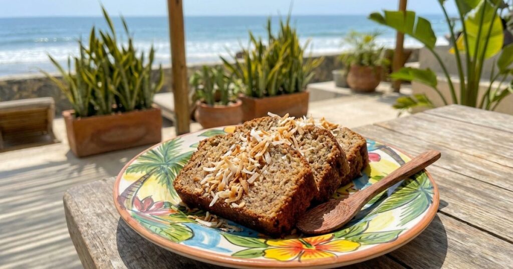 Each slice offers a subtle chew from the coconut and a rich, buttery texture that pairs perfectly with the natural sweetness of ripe bananas.